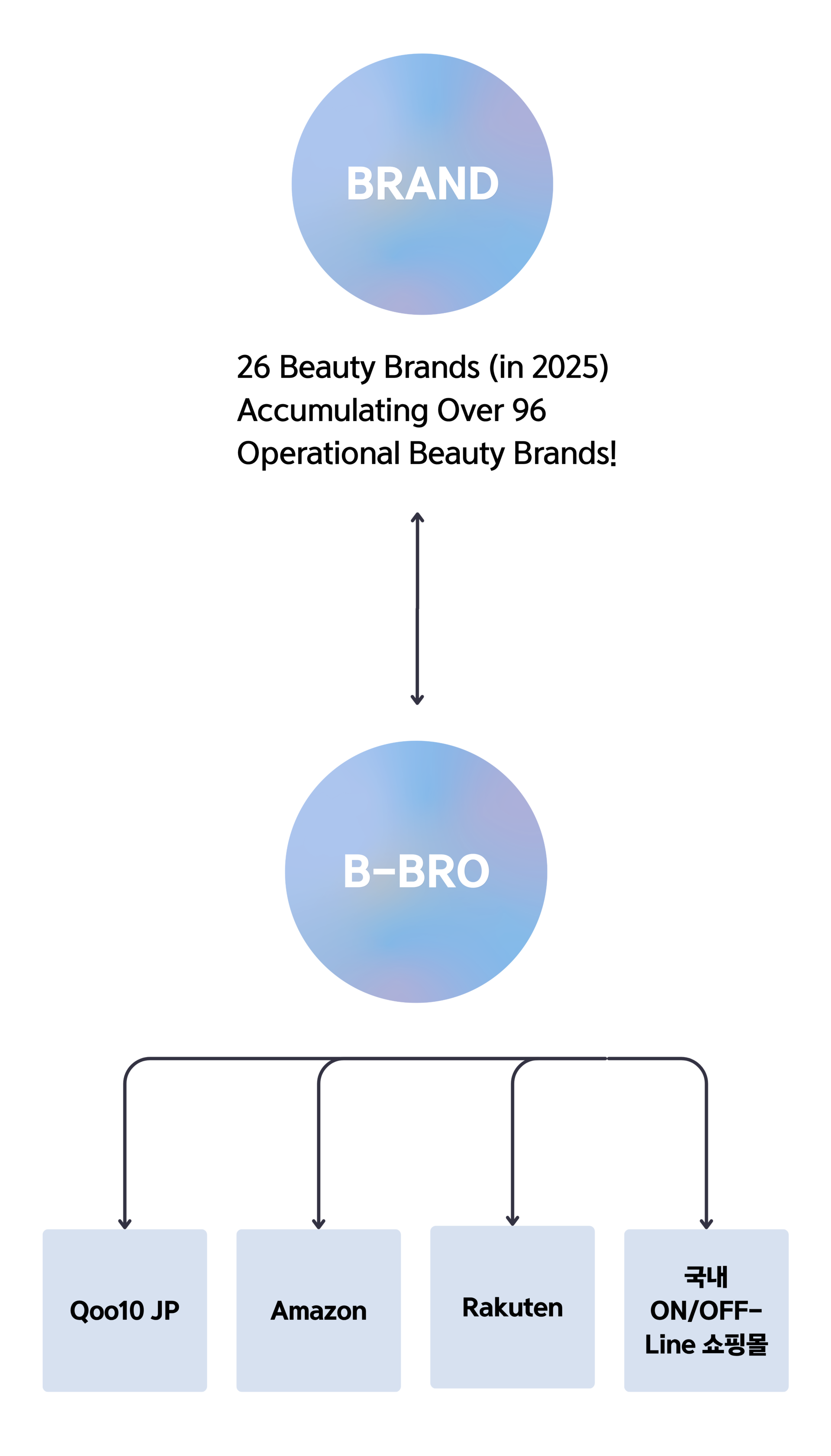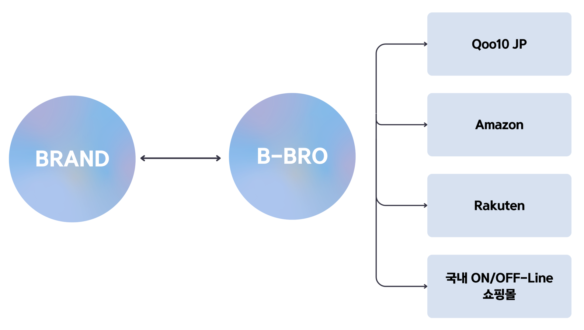 20년 이상의 코스매틱 및 건강식품 해외 유통 경험과 B-BRO 자체 개발 이커머스 물류관리 솔루션으로 Qoo10 재팬, Amazon 재팬 등 해외 대형 온라인 쇼핑몰 운영에 필요한 유통, 계정대행, 물류 전 과정을 통합 지원